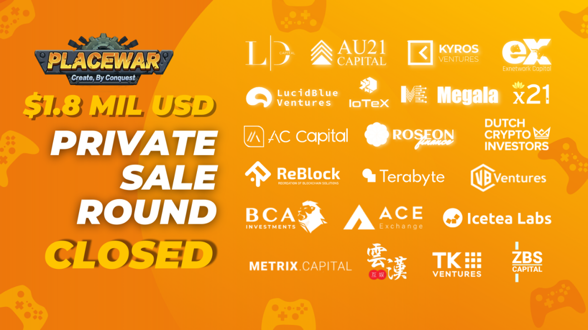 PlaceWar, which was founded in early 2021 has since achieved a notable milestone with a sizeable community of over 25,000. In closing the private sale round, investors have pumped in over $1.8 million. The notable venture capitals that participated in this round are AC Capital, AU21, Woodson Game, Exnetwork Capital, Icetea Labs, IoTex, Kyros Ventures, LD Capital, Lucid Blue Ventures, Megala Ventures, Metrix Capital, ReBlock, RoseOn, X21, and many more top blockchain investors.